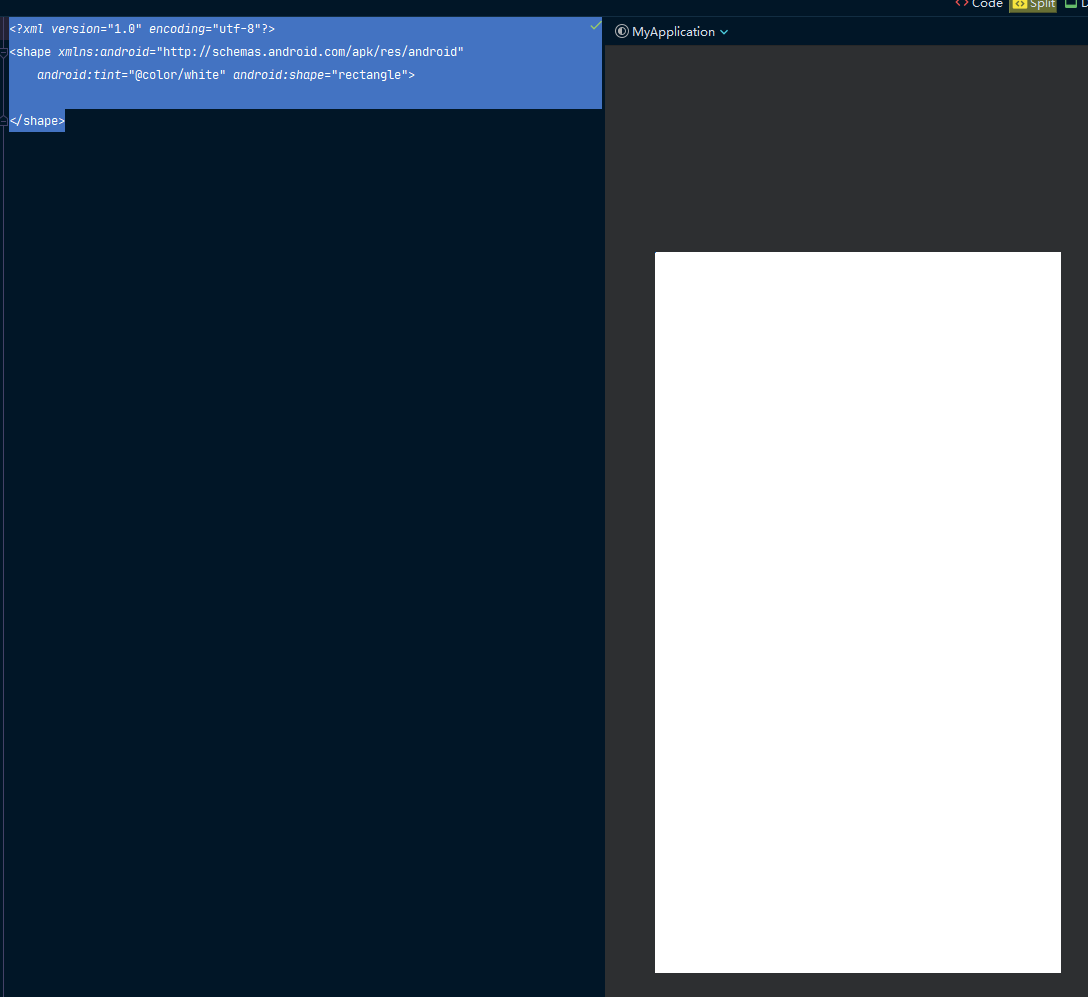 <?xml version="1.0" encoding="utf-8"?> <shape xmlns:android="http://schemas.android.com/apk/res/android" android:tint="@color/white" android:shape="rectangle"> </shape>