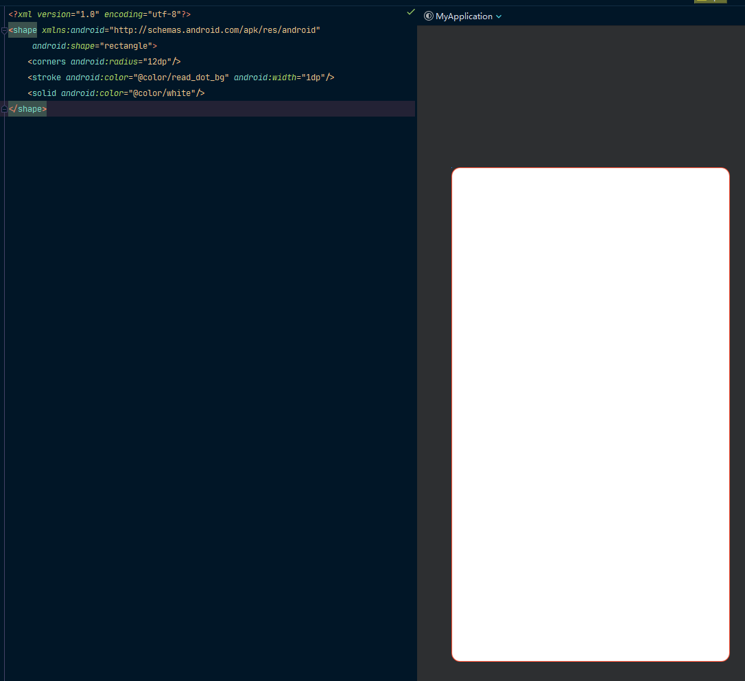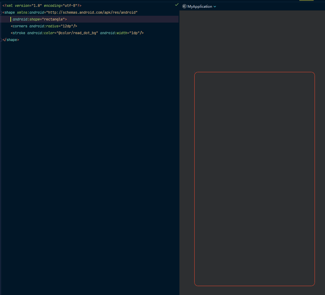 <?xml version="1.0" encoding="utf-8"?> <shape xmlns:android="http://schemas.android.com/apk/res/android" android:shape="rectangle"> <corners android:radius="12dp"/> <stroke android:color="@color/read_dot_bg" android:width="1dp"/> </shape>
