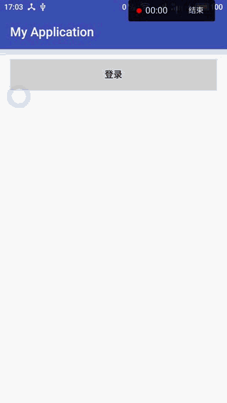 用PopupWindow实现此功能还是比较简单的,首先我们写一个布局,只有一个登录按钮,用于触发等待界面: