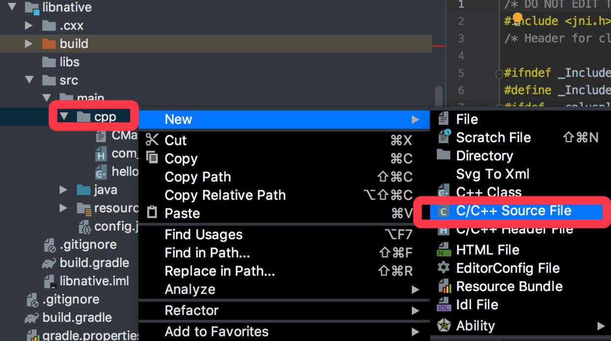 也很简单,JNI主要包含了两部分内容:定义的native方法的Java类(Java代码中调用so库的入口)、native方法的实现类,我们只需要将这两部分提供给他们就可以了: