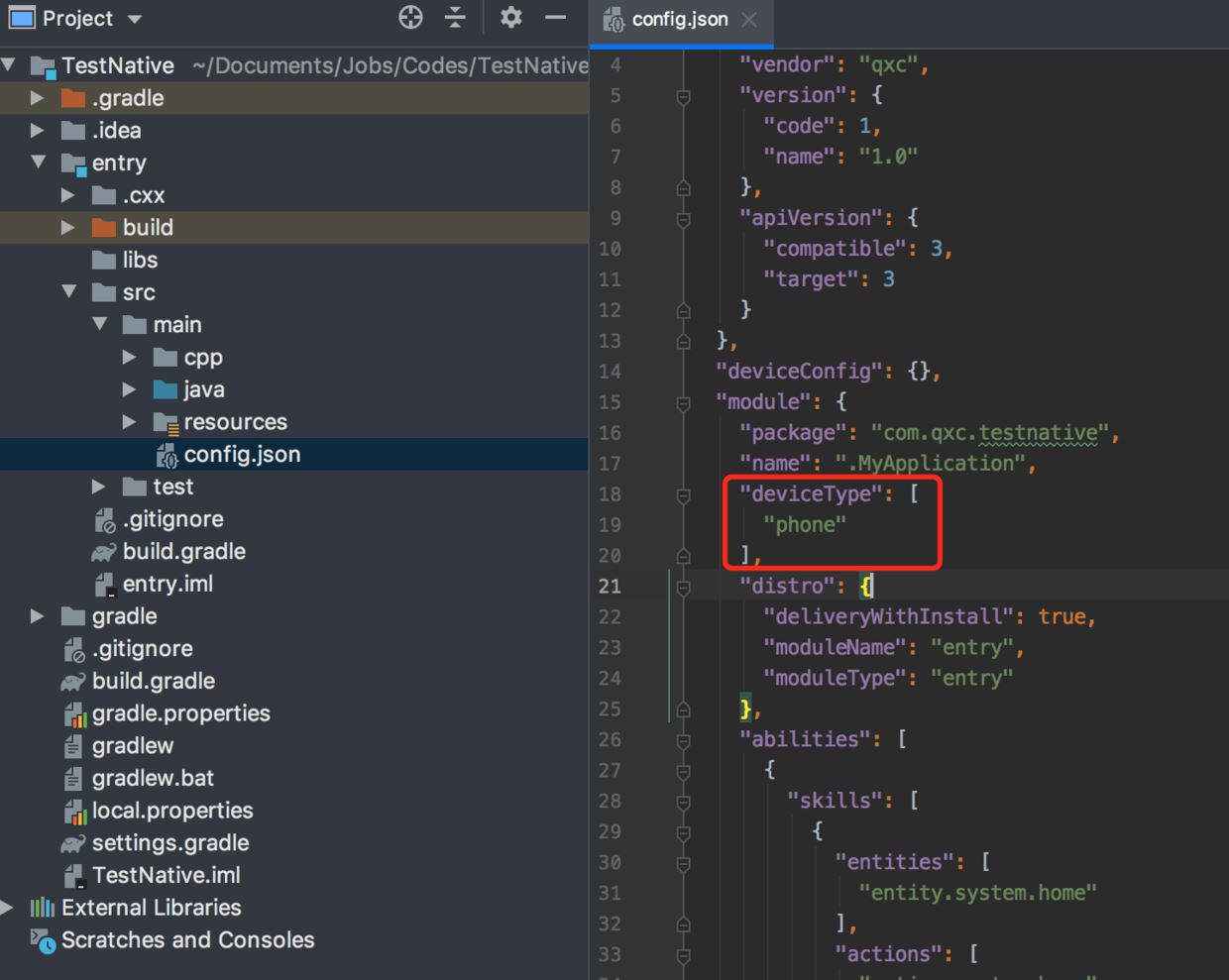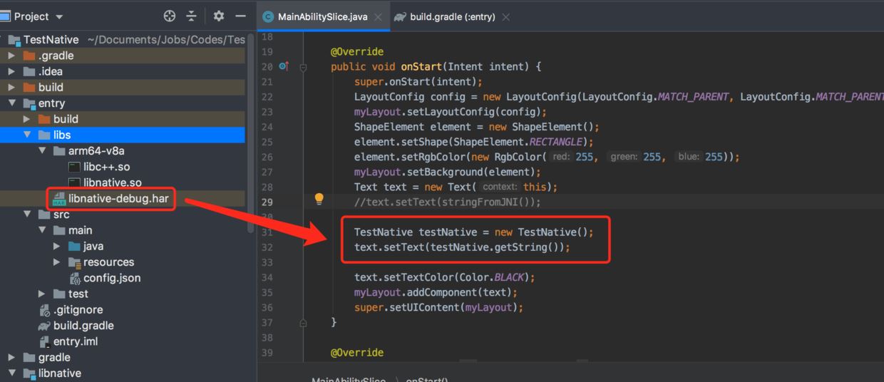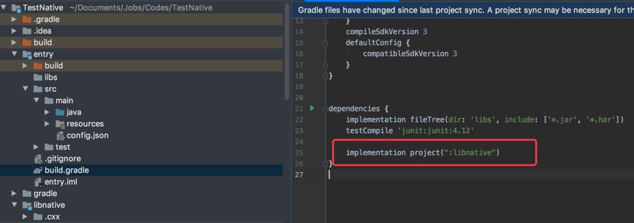entry依赖libnative,我们可以在entry的build.gradle中进行配置:
