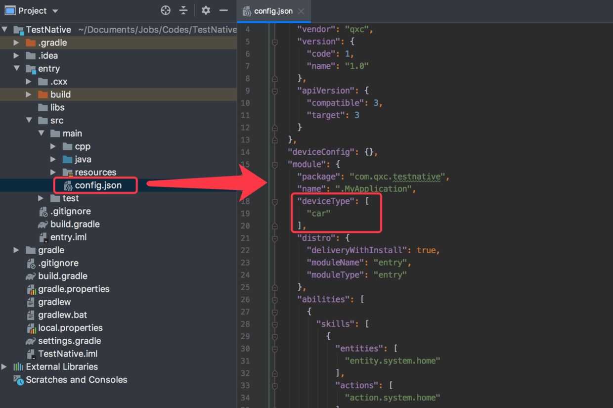 其实,我们还有其他的方式(原因:JNI开发也就涉及到native方法定义、native源码、Cmake配置文件、Gradle配置等内容):我们可以新建一个Car类型的Native C 工程和一个Harmony os Library Module,然后将模板工程entry中的JNI代码迁移到Harmony os Library Module中。