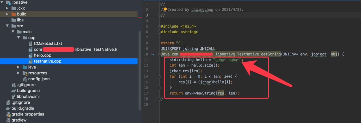 为了加深大家理解,此处不再使用默认的hello.cpp了,咱们实现一个简单的JNI开发: