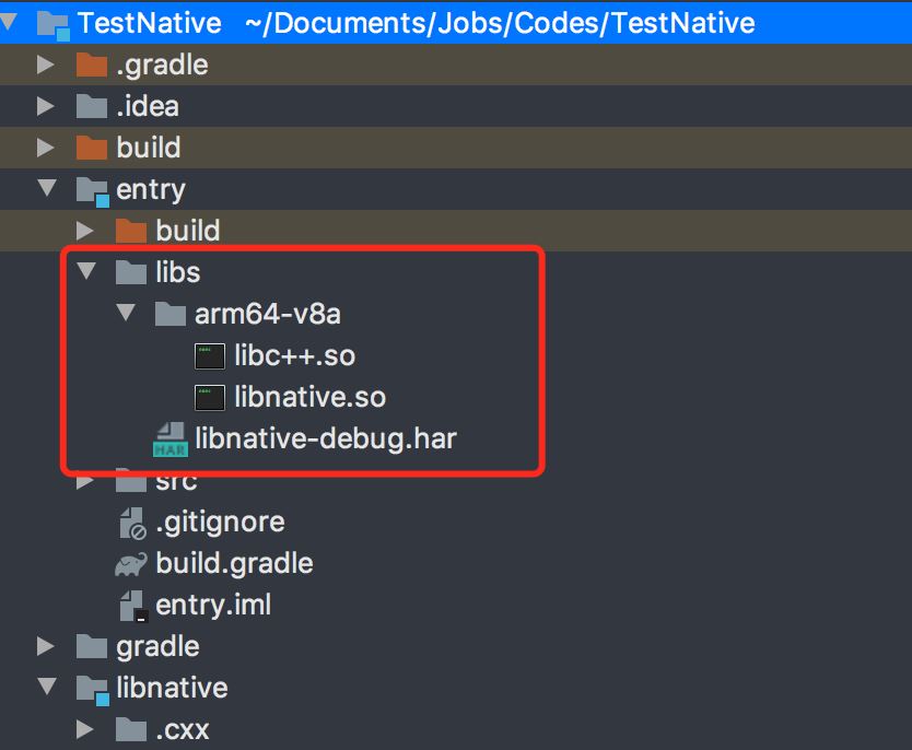 我们将libnative中的so库、har拷贝到entry的libs目录下:
