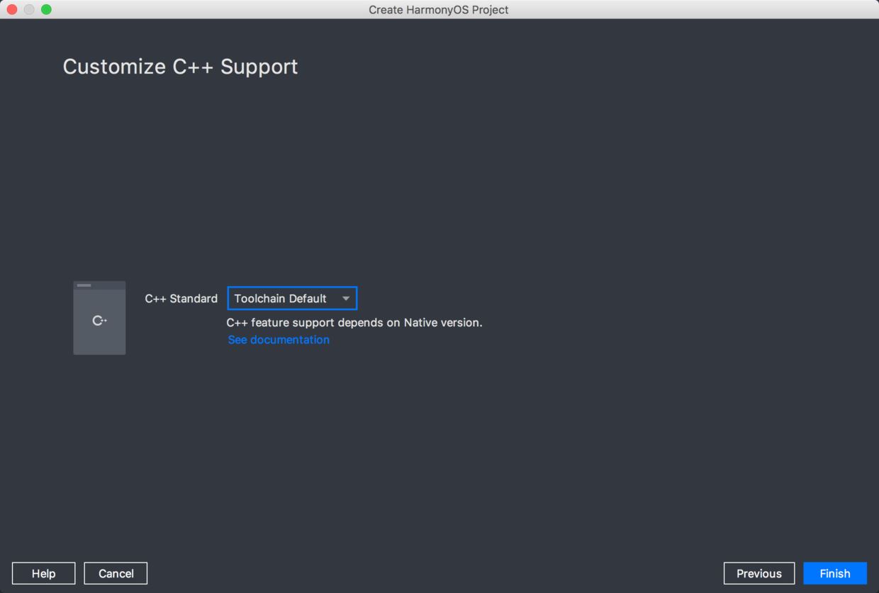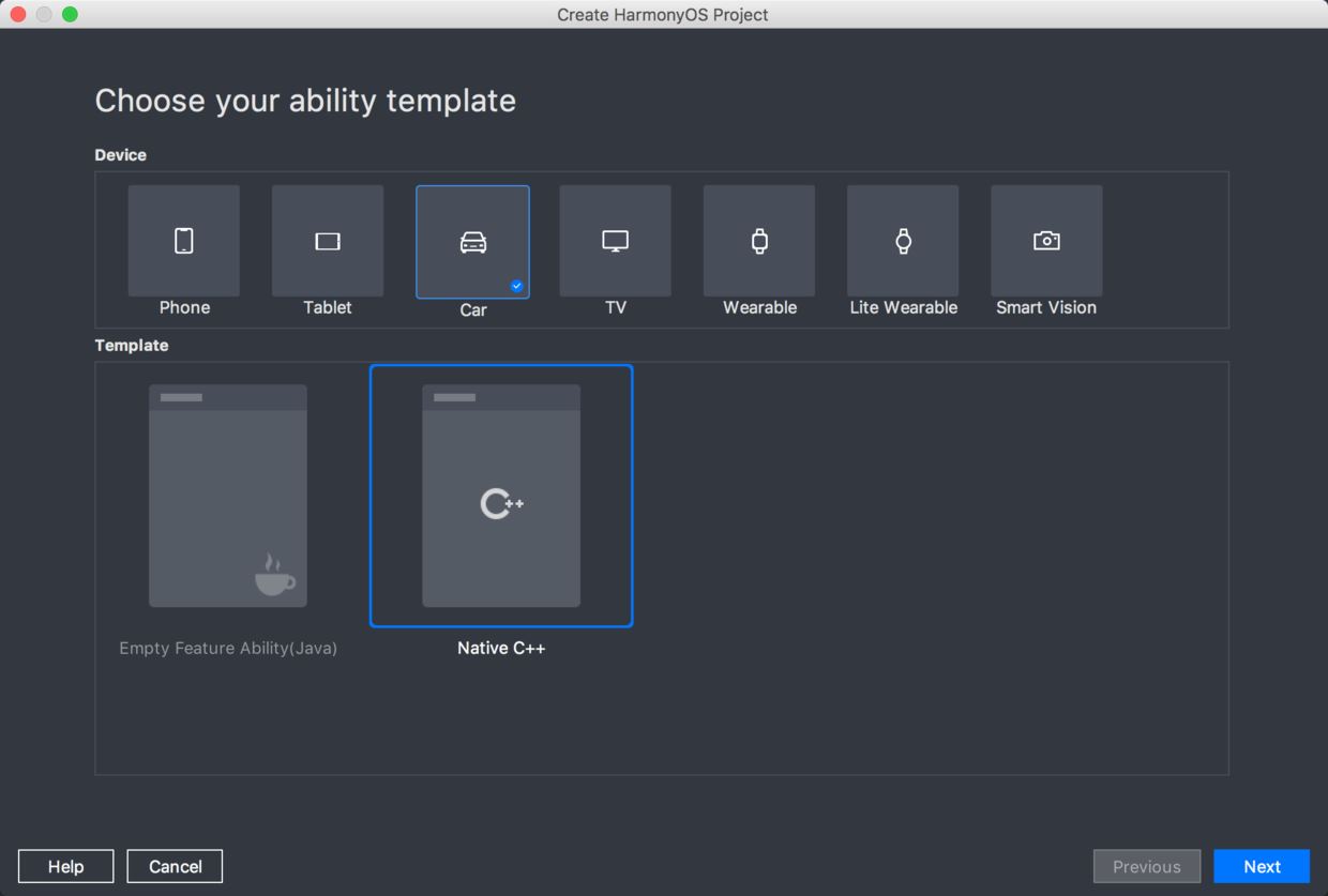 目前,通过DevEco-Studio创建创建Native C 模板类型的工程时,只有Car支持这种模板(Phone默认不包含Native C 模板)。