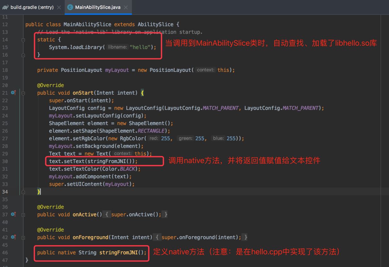 --> 页面加载 --> 调用MainAbilitySlice类 --> 查找并加载so库
