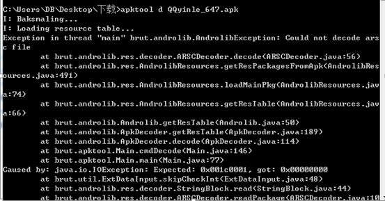 原因:apktool的版本过低,无法解析当前版本的apk。