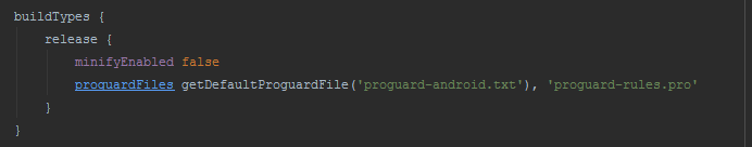 这里的minifyEnable即为控制是否启动ProGuard的开关,设置为true则开启ProGuard进行混淆和优化。
