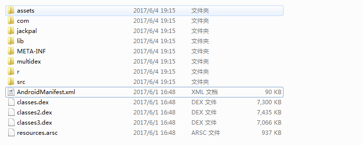 Android的应用程序APK文件说到底也是一个压缩文件,那么可以通过解压缩得打里面的文件内容,不过很显然,当你去解压完去查看的时候,发现里面的很多东西和你想象中的不太一样。资源文件等xml文件基本打不开,即使打开了也都是乱码(而这正是Android进行加密过),有些应用会将图片资源等的也加密(如qq音乐)。