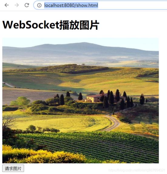 多说无益,还不如痛痛快快的来一把,为了减低复杂度,我用java的websocket来实现图片流的发送(当然c 的库我也一个实战项目中用过的名为WebSocket的封装的dll工程项目,需要的自行私下购买源码),前端使用一个img标签展示图片,这里说明一下,后台模拟发送图片(这里仅仅是图片,不是流,如果是流直接连续不断发送即可需要ffmpeg转码)