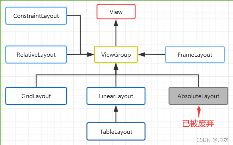 Android的布局管理器本身就是个UI组件,所有的布局管理器都是ViewGroup的子类,而ViewGroup是View的子类,所以布局管理器可以当成普通的UI组件使用,也可以作为容器类使用,可以调用多个重载addView()向布局管理器中添加组件,并且布局管理器可以互相嵌套,当然不推荐过多的嵌套 (如果要兼容低端机型,最好不要超过5层)。