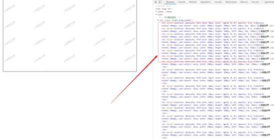 const wrap = document.querySelector('.wrap1'); const { clientWidth, clientHeight } = wrap; const waterHeight = 100; const waterWidth = 180; // 能放下几行几列 const [columns, rows] = [Math.ceil(clientWidth / waterWidth), Math.ceil(clientHeight / waterHeight)] for (let i = 0; i < columns; i ) { for (let j = 0; j <= rows; j ) { // 生成水印块 const watcerMarkElement = createWaterMarkElement(); // 动态设置偏移值 addAttributes(watcerMarkElement, { width: `${waterWidth}px` , height: `${waterHeight}px` , left: `${waterWidth (i - 1) * waterWidth 10}px` , top: `${waterHeight (j - 1) * waterHeight 10}px` , }); wrap.appendChild(watcerMarkElement) } }