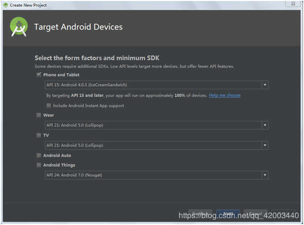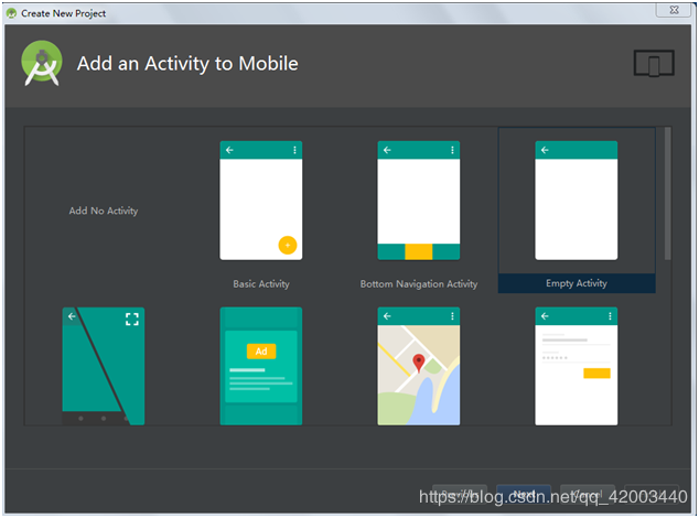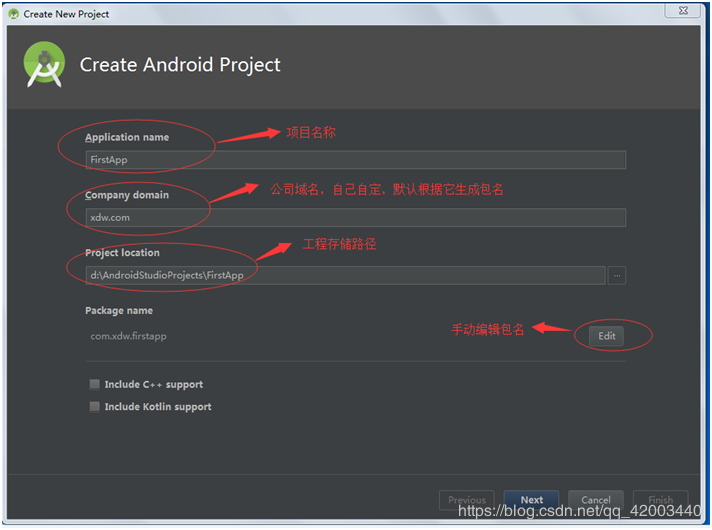 点击上图中的Start a new Android Studio project新建一个工程,进入下面的界面