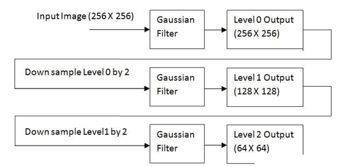 1.计算输入图像减少的分辨率的近似值。这可以通过对输入进行滤波并以2为步长进行抽样(即子抽样)。可以采用的滤波操作有很多,如邻域平均(可生成平均值金字塔),高斯低通滤波器(可生成高斯金字塔),或者不进行滤波,生成子抽样金字塔。生成近似值的质量是所选滤波器的函数。没有滤波器,在金字塔的上一层中的混淆变得很显著,子抽样点对所选取的区域没有很好的代表性。