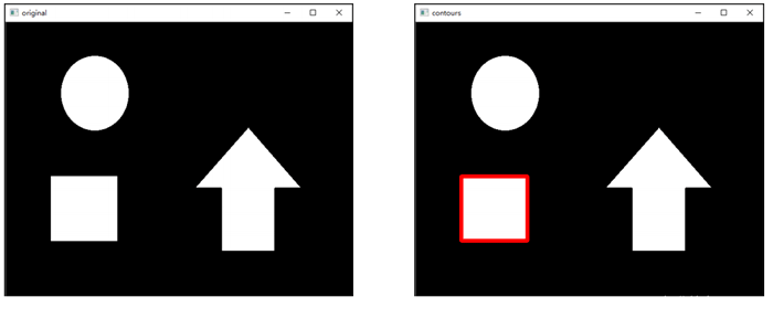 - cv2.CHAIN_APPROX_SIMPLE:压缩水平方向,垂直方向,对角线方向的元素, 只保留该方向的终点坐标,例如一个矩形轮廓只需4个点来保存轮廓信息