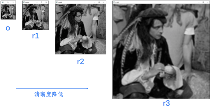 这里我们对图像做三次向下取样,结果为: