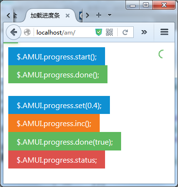 到此这篇关于AmazeUI 加载进度条的实现示例的文章就介绍到这了,更多相关AmazeUI 加载进度条内容请搜索Devmax以前的文章或继续浏览下面的相关文章,希望大家以后多多支持Devmax!