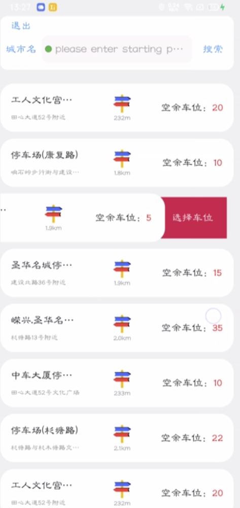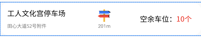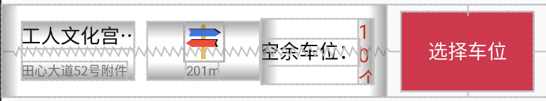 <?xml version="1.0" encoding="utf-8"?> <RelativeLayout android:layout_width="match_parent" android:layout_height="wrap_content" xmlns:android="http://schemas.android.com/apk/res/android" android:layout_marginTop="10dp"> <TextView android:id="@ id/SideText" android:layout_width="100dp" android:layout_height="60dp" android:text="选择车位" android:textSize="15sp" android:background="#DD2248" android:gravity="center" android:textColor="#ffffff" android:layout_marginRight="10dp" android:layout_centerInParent="true" android:layout_alignParentRight="true"/> <!--大--> <LinearLayout android:id="@ id/SideLayout" android:layout_width="match_parent" android:layout_height="70dp" android:orientation="horizontal" android:background="@drawable/btn_style" android:gravity="center" android:padding="10dp"> <!--小--> <LinearLayout android:layout_weight="1" android:layout_width="0dp" android:layout_height="wrap_content" android:orientation="vertical" android:layout_marginLeft="5dp"> <TextView android:id="@ id/SimplePlace" android:layout_width="wrap_content" android:layout_height="wrap_content" android:text="工人文化宫停车场" android:textColor="#000000" android:textSize="15sp" android:singleLine="true" android:ellipsize="end" /> <TextView android:id="@ id/detailPlace" android:layout_width="wrap_content" android:layout_height="wrap_content" android:text="田心大道52号附件" android:textSize="10sp" android:layout_marginTop="10dp" android:singleLine="true" android:ellipsize="end" /> </LinearLayout> <!--小--> <LinearLayout android:layout_weight="1" android:layout_width="0dp" android:layout_height="wrap_content" android:orientation="vertical" android:layout_marginLeft="10dp" android:layout_gravity="center" android:gravity="center"> <ImageView android:id="@ id/ParkingIcon" android:layout_width="30dp" android:layout_height="30dp" android:src="@drawable/road_sign" android:scaleType="fitCenter"/> <TextView android:id="@ id/ParkingDistance" android:layout_width="wrap_content" android:layout_height="wrap_content" android:text="201m" android:textSize="10sp" /> </LinearLayout> <LinearLayout android:layout_width="0dp" android:layout_height="wrap_content" android:layout_weight="1" android:layout_gravity="center" android:gravity="center"> <TextView android:layout_width="wrap_content" android:layout_height="wrap_content" android:text="空余车位:" android:textColor="#000000" android:textSize="15sp"/> <TextView android:id="@ id/ParkingNumber" android:layout_width="wrap_content" android:layout_height="wrap_content" android:text="10个" android:textColor="#ff0000" android:textSize="15sp"/> </LinearLayout> </LinearLayout> </RelativeLayout>