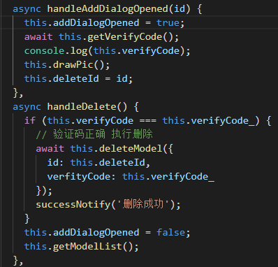 弹框为什么会弹出呢? 因为点击删除按钮,触发 handleAddDialogOpened