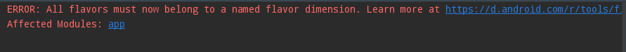 build { ...... defaultConfig { ...... flavorDimensions "versionCode" } }