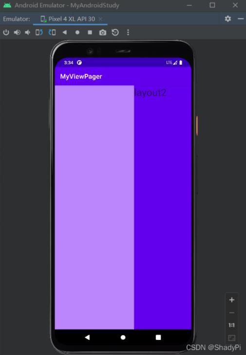 <?xml version="1.0" encoding="utf-8"?> <LinearLayout xmlns:android1="http://schemas.android.com/apk/res/android" android1:layout_height="match_parent" android1:layout_width="match_parent" android1:background="@color/purple_500" android1:orientation="vertical"> <TextView android1:textSize="30sp" android1:text="layout2" android1:layout_width="wrap_content" android1:layout_height="wrap_content"/> </LinearLayout>