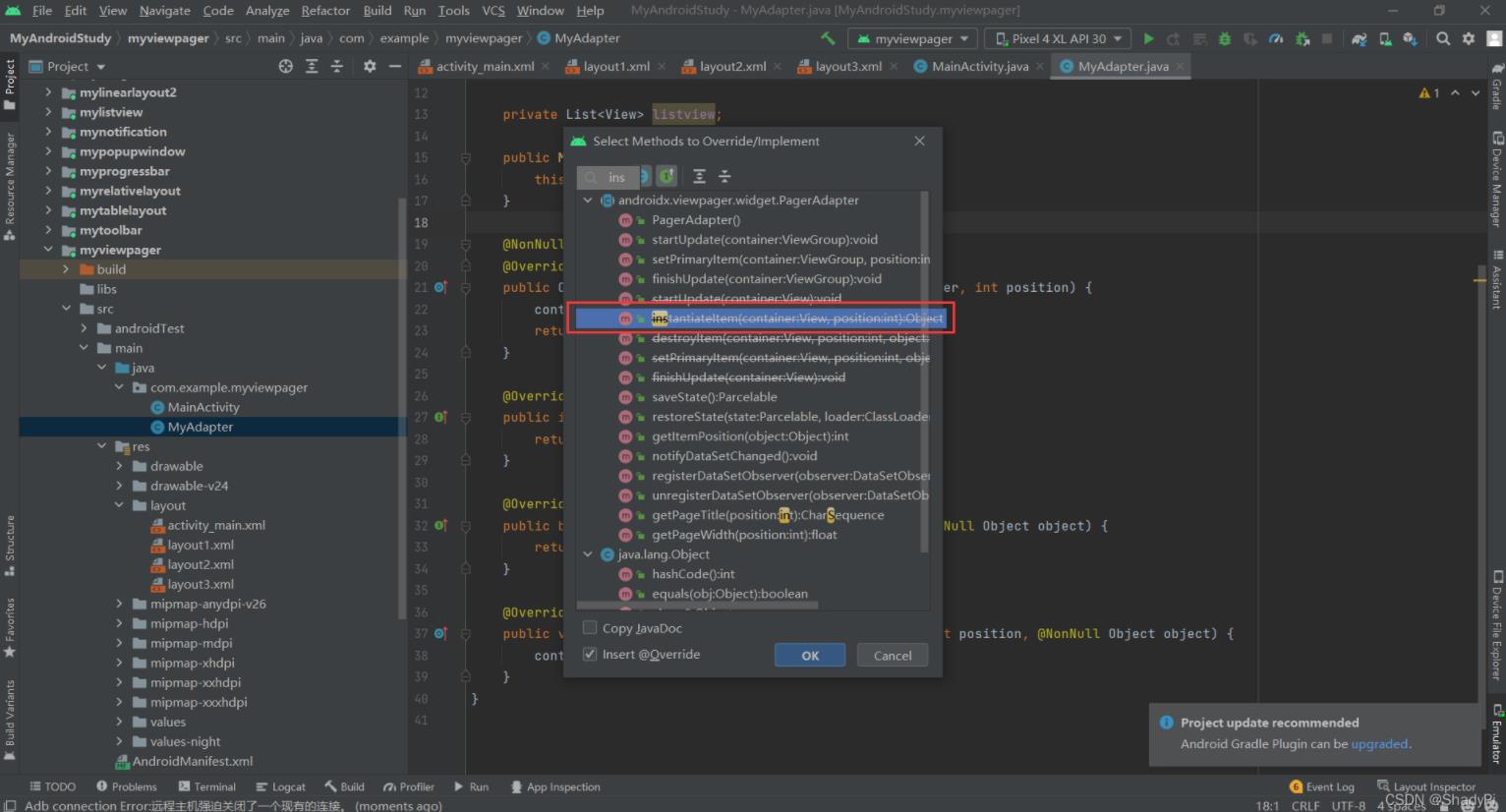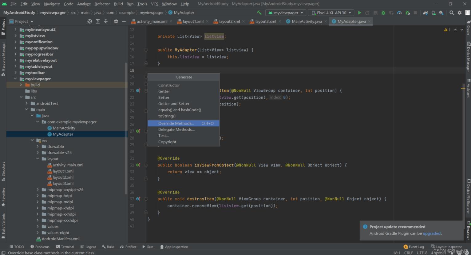 首先,需要有一个构造器,使得主函数中的数据能够传进adapter: