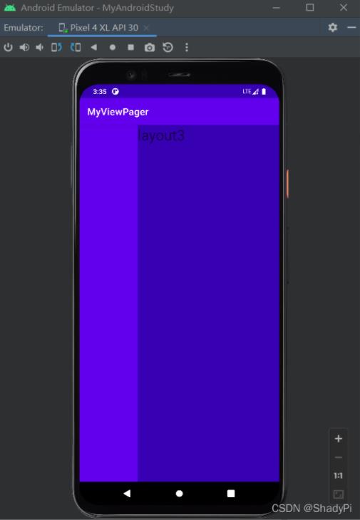 跟ListView类似,我们把三个页面从xml中渲染出来,成为java代码中的一个View类型变量,然后将其装入一个List中,最终通过adapter装填进viewpager里。