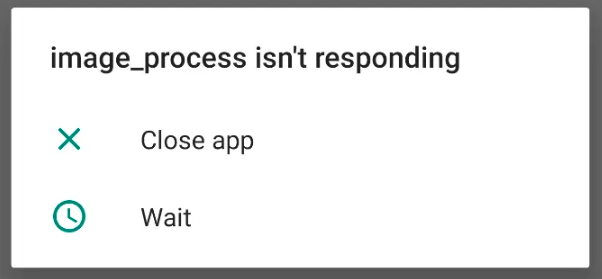 2022-08-27 16:11:53.168 2057-2080/system_process E/ActivityManager: ANR in com.lay.image_process (com.lay.image_process/.MainActivity) PID: 31848 Reason: Input dispatching timed out (Waiting to send non-key event because the touched window has not finished processing certain input events that were delivered to it over 500.0ms ago. Wait queue length: 6. Wait queue head age: 5525.3ms.)