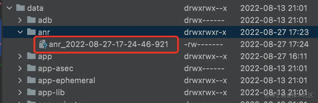 但是这里需要注意的就是,很多高版本的ROM已经不支持当前文件夹的查看,甚至需要Root,因此此策略暂时不能应用,那么除此之外,还可以通过WatchDog来监控线程状态,从而判断是否发生ANR。