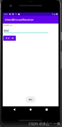 2、在广播Activity中,输入信息,点击发送广播按钮发送广播,并且在广播接收器中接收广播并显示。