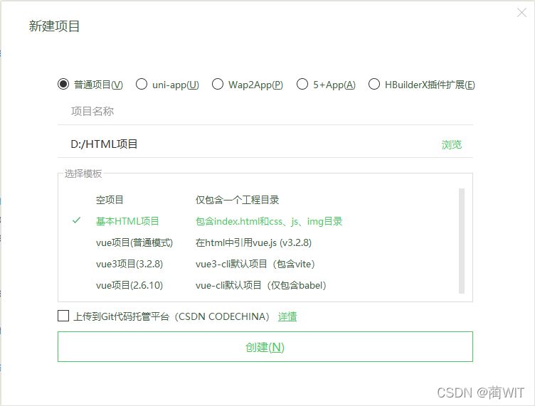 使用HBuilderX编辑器创建一个“基本HTML项目”: