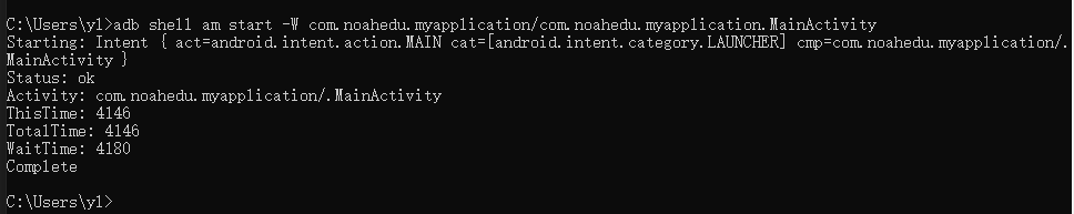 adb shell am start -W 包名/包名 类名
