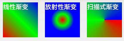 首先有三种渐变类型,分别是:linear(线性渐变)、radial(放射性渐变)、sweep(扫描式渐变)