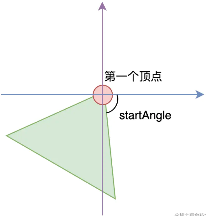 :第一条边相对水平方向旋转的夹角,这样我们可以改变夹角来更改三角形的绘制位置。 -