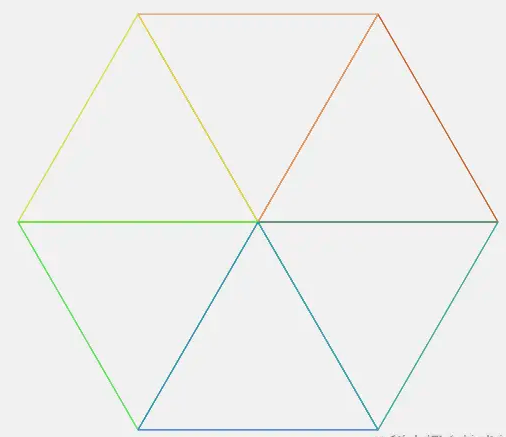 单独一个三角形没啥意思,我们通过画6个等边三角形,每个三角形旋转60度,空心绘制看看怎么样?