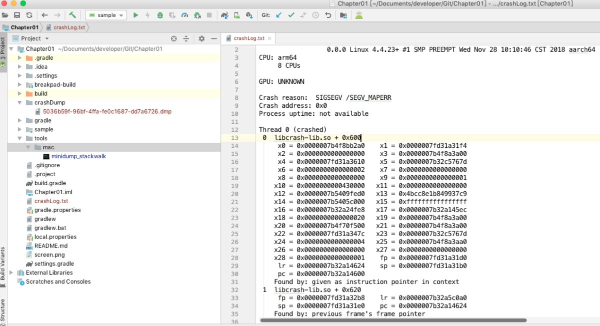 以上所述是小编给大家介绍的Android使用google breakpad捕获分析native cash,希望对大家有所帮助,如果大家有任何疑问请给我留言,小编会及时回复大家的。在此也非常感谢大家对Devmax网站的支持!
