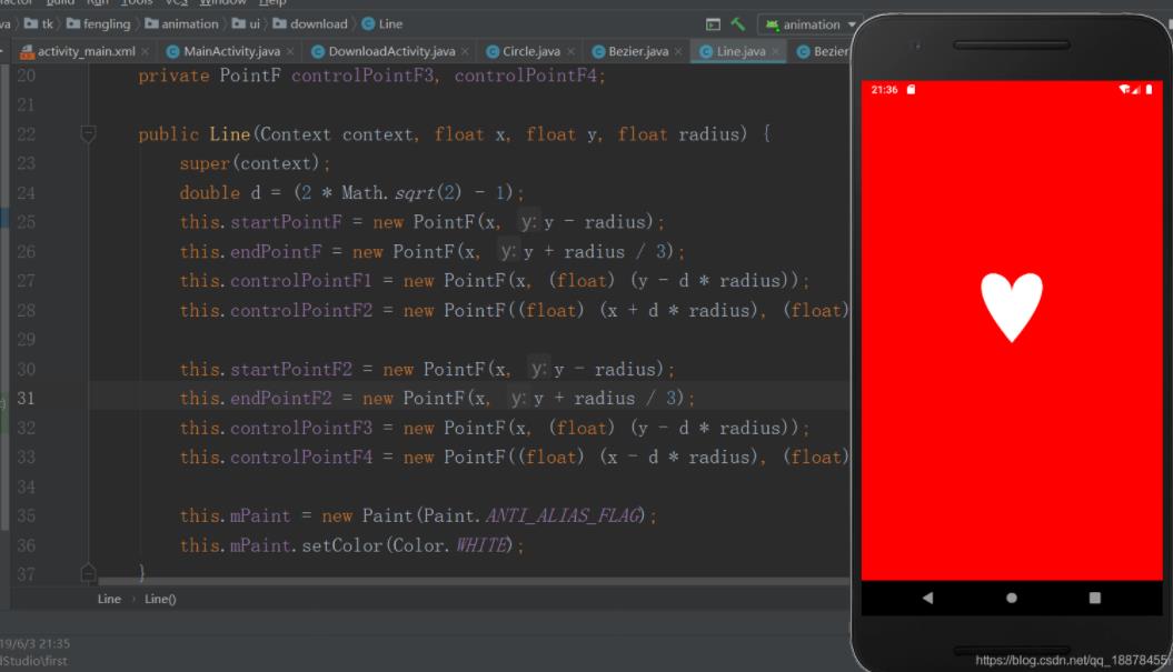 本文实例为大家分享了Android使用贝塞尔曲线画心形的具体代码,供大家参考,具体内容如下