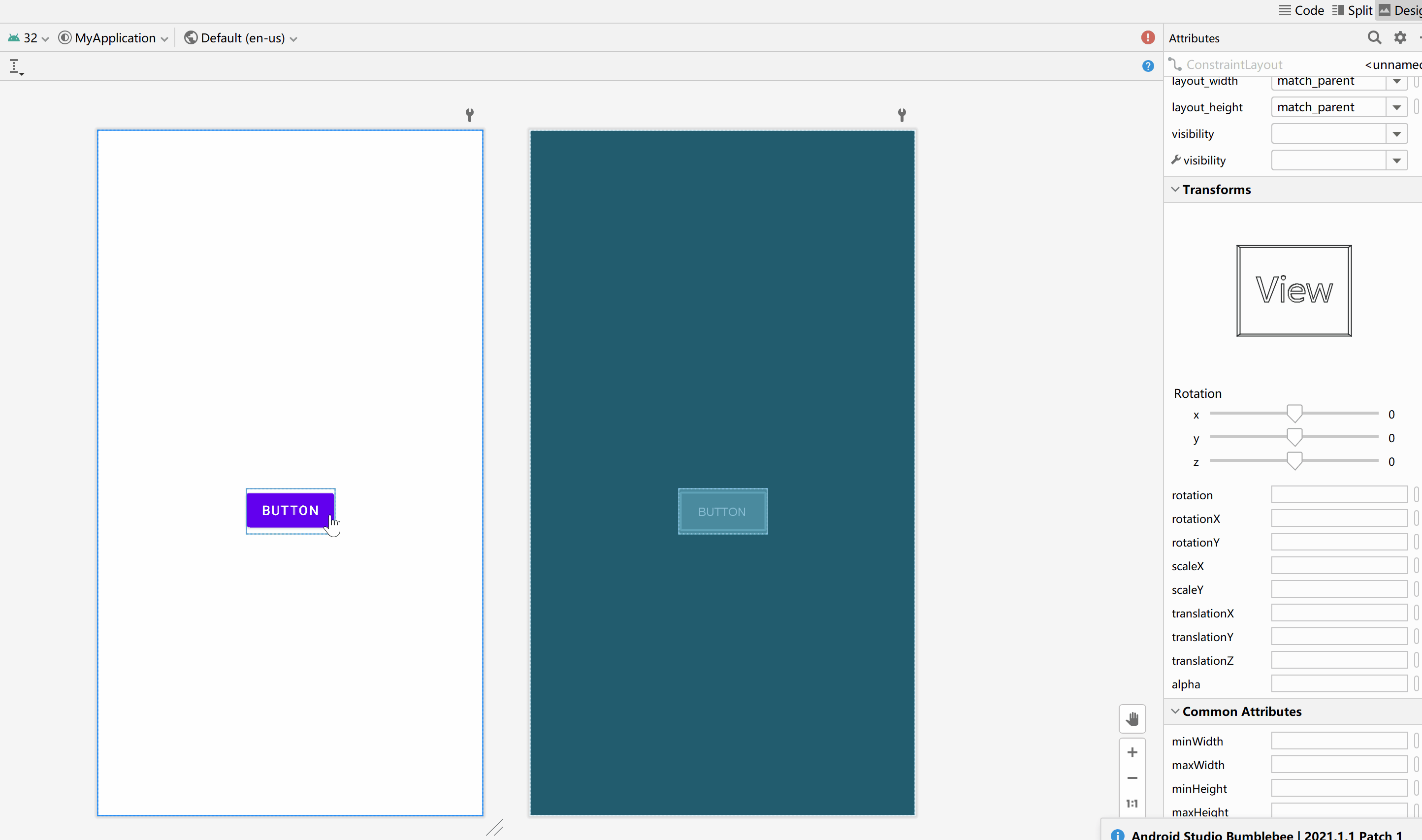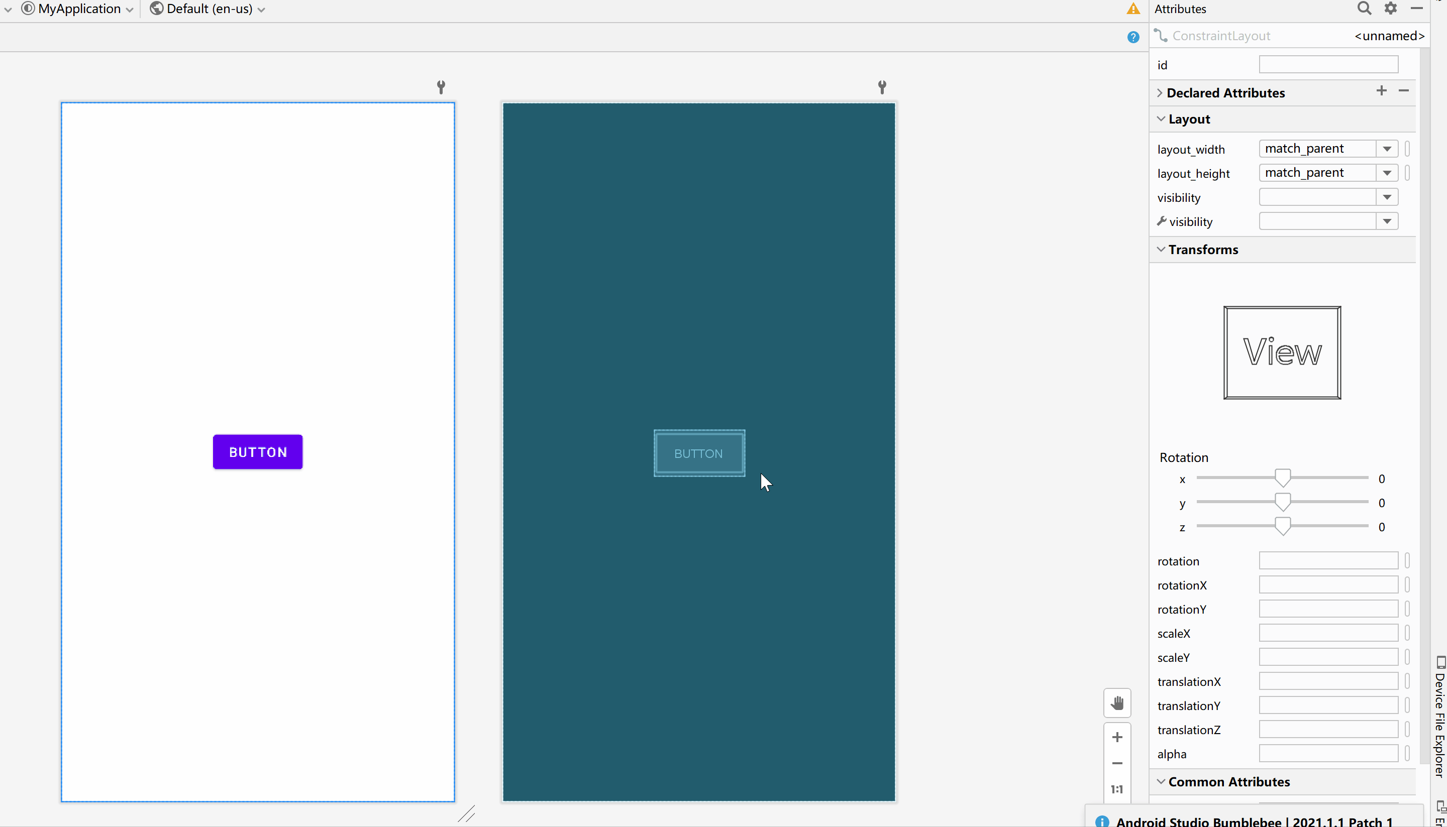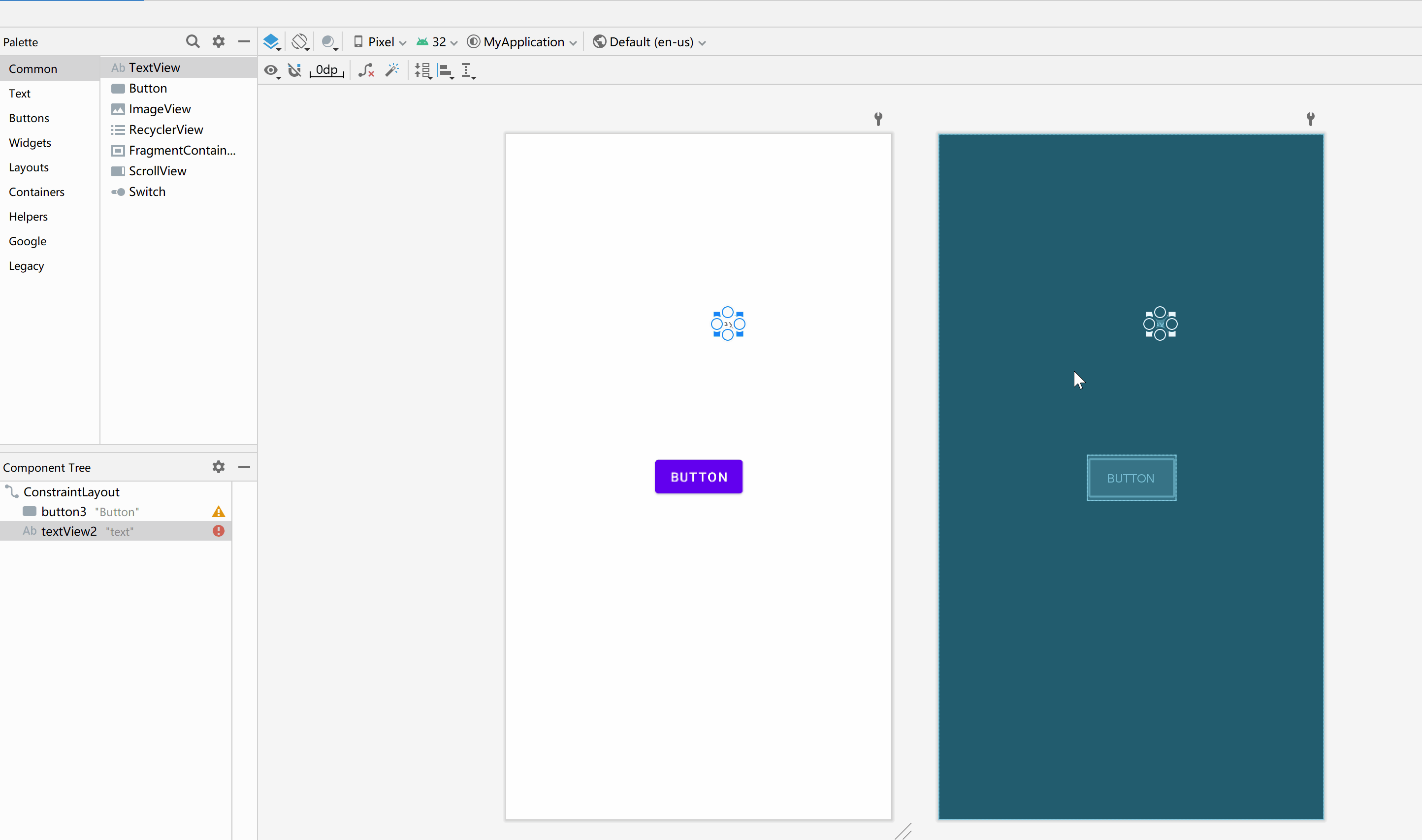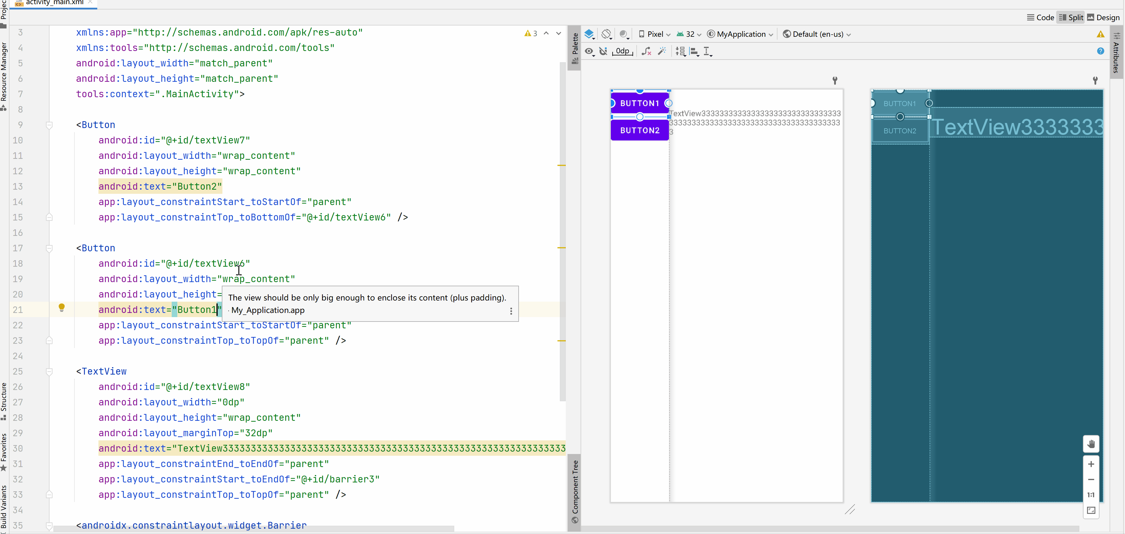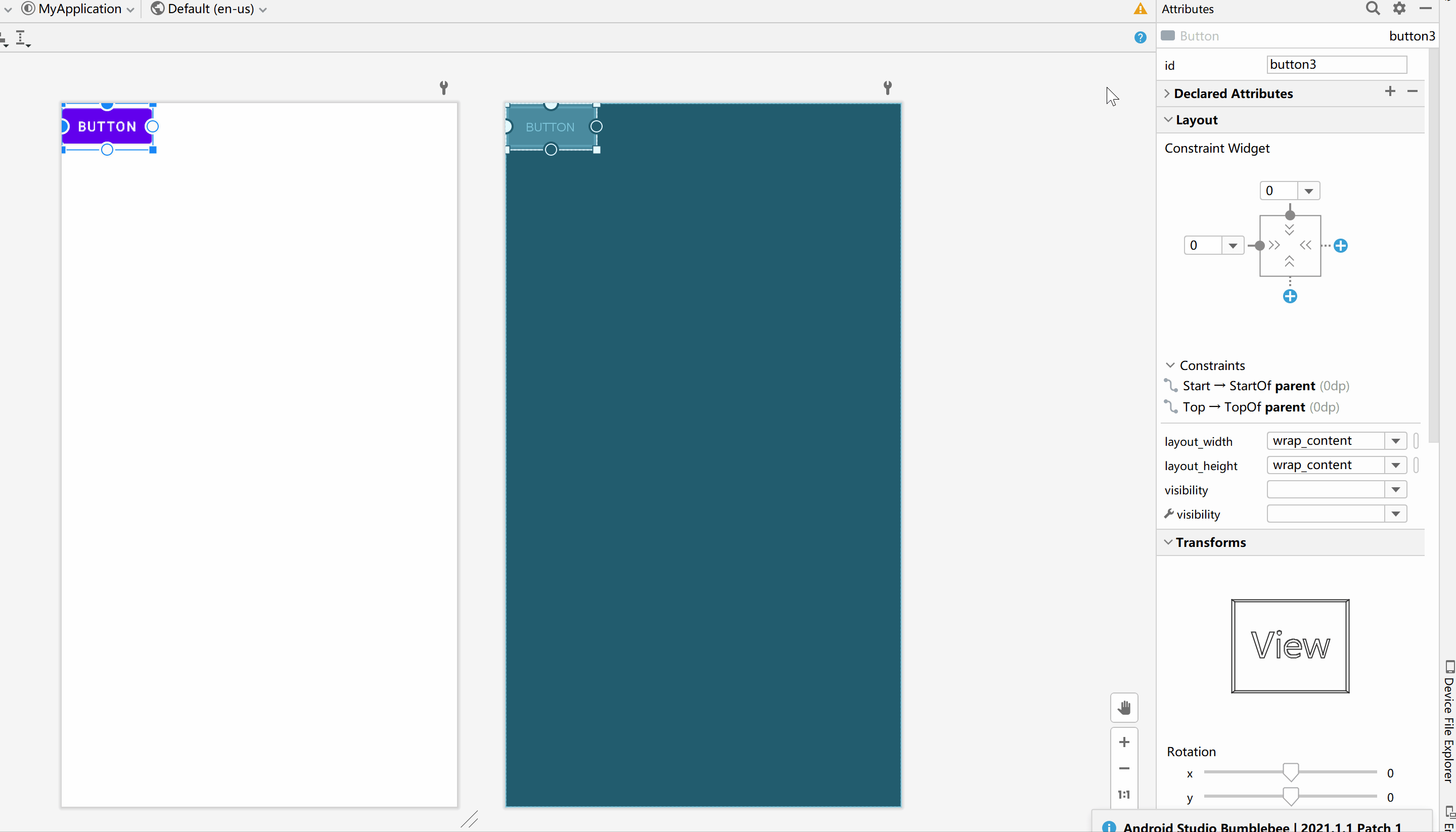 - app:layout_constraintEnd_toEndOf="@ id/button3" 右边添加约束到其他控件右边
