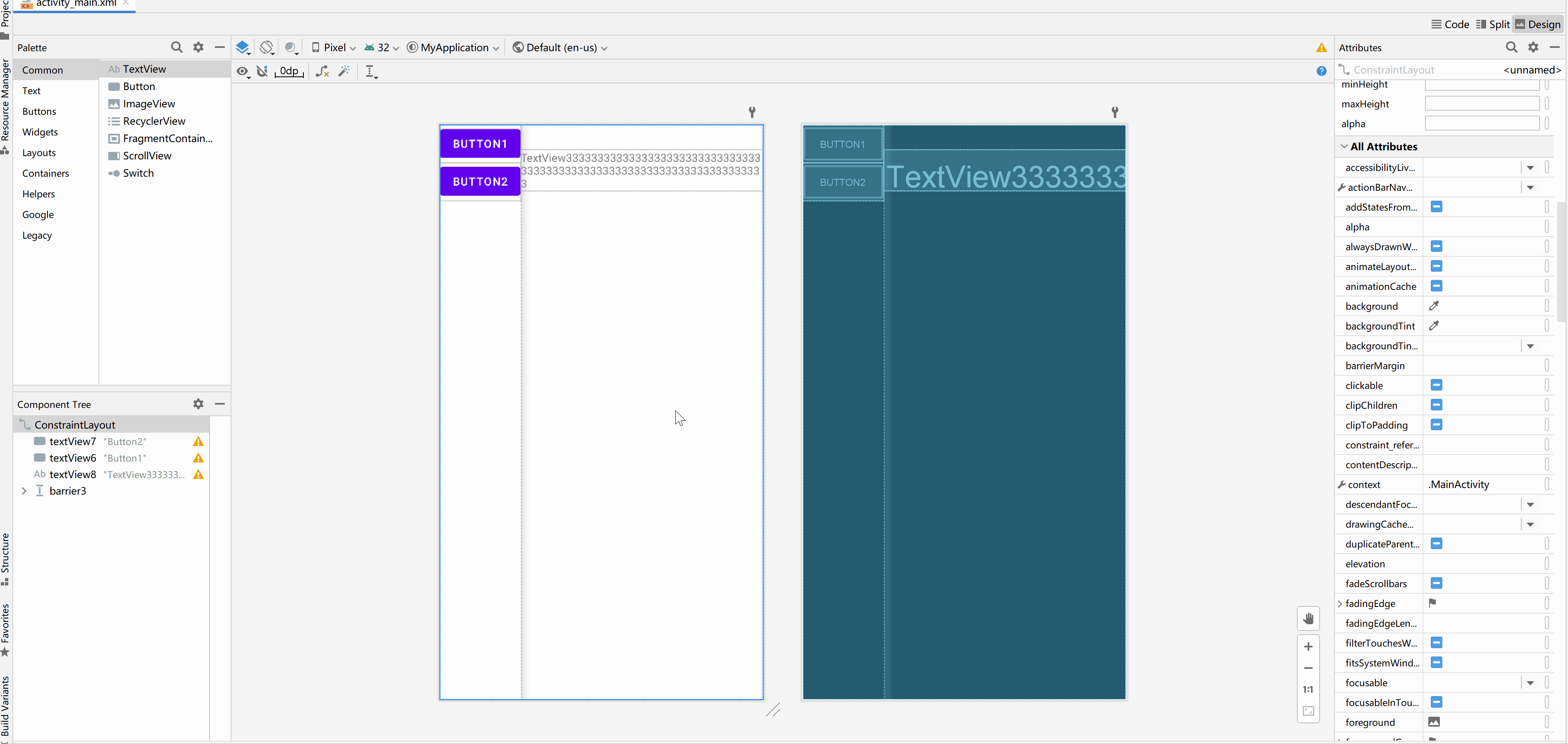 - app:layout_constraintStart_toStartOf="@ id/button3" 左边添加约束到其他控件左边
