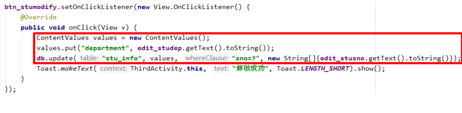 2、第二个参数是ContentValues对象,要把更新的数据在这里组装进去;