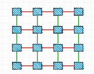 现在有两种方法来解决,一种就是给顶点做标记,当前做线的两端的顶点已经标记过了,那么就跳过当前轮的遍历。另外一种方法,就是可以根据网格这种特定的形状来获取边,如下图,按照两种不同的颜色来计算水平的边和垂直的边。
