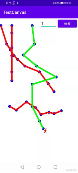 class DrawView extends View { private Boolean bool=false; private String num; public DrawView(Context context) { super(context); } public void setBool(Boolean isdraw,String number){ this.bool=isdraw; this.num=number; Log.e("leo","bool:" bool); } public void DrawLines(Canvas canvas){ Log.e("leo","yayyaya" bool); Paint mPaint3 = new Paint(); mPaint3.setAntiAlias(true); mPaint3.setColor(Color.GREEN); mPaint3.setTextSize(36); mPaint3.setStrokeWidth(20); float[] points3=new float[]{450,100,480,350,480,350,330,500,330,500,510,650,510,650,780,800,780,800,450,900,450,900,450,1200,450,1200,550,1400,550,1400,600,1500}; canvas.drawLines(points3,mPaint3); } @Override public void onDraw(Canvas canvas) { super.onDraw(canvas); /* * 方法 说明 drawRect 绘制矩形 drawCircle 绘制圆形 drawOval 绘制椭圆 drawPath 绘制任意多边形 * drawLine 绘制直线 drawPoin 绘制点 */ // 创建画笔 Paint mPaint = new Paint(); mPaint.setStrokeWidth(20); mPaint.setColor(Color.RED);// 设置红色 //绘制Cap为BUTT的点 Paint mPaint2 = new Paint(); mPaint2.setStrokeWidth(40); mPaint2.setColor(Color.BLUE);// 设置红色 mPaint2.setStrokeCap(Paint.Cap.ROUND); Paint mPaint3 = new Paint(); mPaint3.setAntiAlias(true); mPaint3.setColor(Color.GREEN); mPaint3.setTextSize(36); mPaint3.setStrokeWidth(20); canvas.drawPoints(new float[]{20,100,100,350,150,430,200,510,250,560,350,650,550,730,670,890,750,1000}, mPaint2); canvas.drawPoints(new float[]{170,100,170,200,170,400,170,510,170,730,170,850}, mPaint2); canvas.drawPoints(new float[]{450,100,480,350,330,500,510,650,780,800,450,900,450,1200,550,1400,600,1500}, mPaint2); canvas.drawPoints(new float[]{140,1200,230,1250,370,1140,500,1220,570,1310,680,1280,750,1300,850,1260}, mPaint2); mPaint.setAntiAlias(true); mPaint.setColor(Color.RED); mPaint.setTextSize(36); float[] points=new float[]{20,100,100,350,100,350,150,430,150,430,200,510,200,510,250,560,250,560,350,650,350,650,550,730,550,730,670,890,670,890,750,1000};//至少4个值,即能够绘制一条直线 float[] points2=new float[]{170,100,170,200,170,200,170,400,170,400,170,510,170,510,170,730,170,730,170,850};//至少4个值,即能够绘制一条直线 // 至少4个值,即能够绘制一条直线 canvas.drawLines(points,mPaint); canvas.drawLines(points2,mPaint); float[] points4=new float[]{140,1200,230,1250,230,1250,370,1140,370,1140,500,1220,500,1220,570,1310,570,1310,680,1280,680,1280,750,1300,750,1300,850,1260};//至少4个值,即能够绘制一条直线 canvas.drawLines(points4,mPaint); float[] points3=new float[]{450,100,480,350,480,350,330,500,330,500,510,650,510,650,780,800,780,800,450,900,450,900,450,1200,450,1200,550,1400,550,1400,600,1500}; canvas.drawLines(points3,mPaint); if (bool==true){ if (num.equals("1")){ DrawLines(canvas); } else if (num.equals("2")){ // float[] points=new float[]{20,100,100,350,100,350,150,430,150,430,200,510,200,510,250,560,250,560,350,650,350,650,550,730,550,730,670,890,670,890,750,1000};//至少4个值,即能够绘制一条直线 canvas.drawLines(points2,mPaint3); } else if (num.equals("3")){ // float[] points2=new float[]{170,100,170,200,170,200,170,400,170,400,170,510,170,510,170,730,170,730,170,850};//至少4个值,即能够绘制一条直线 canvas.drawLines(points,mPaint3); }else if (num.equals("4")){ // float[] points4=new float[]{140,1200,230,1250,230,1250,370,1140,370,1140,500,1220,500,1220,570,1310,570,1310,680,1280,680,1280,750,1300,750,1300,850,1260};//至少4个值,即能够绘制一条直线 canvas.drawLines(points4,mPaint3); } } } }