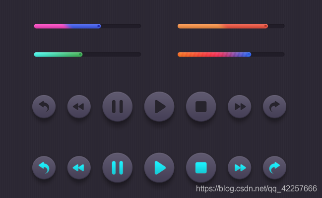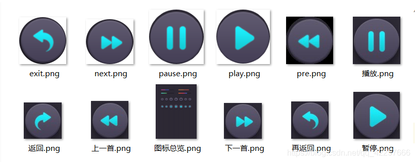 2.1、音乐播放器按钮用这种框框看起来属实有些别扭,所以我又花了几个小时从各大图标网站找到了一款比较中意的UI图。
