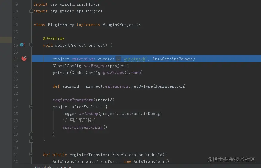 - 断点只能进入Plugin的apply方法,不能进入Transform的transform方法,clean项目再执行上面步骤7、8