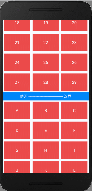 class GridDragShortActivity : AppCompatActivity() { override fun onCreate(savedInstanceState: Bundle?) { super.onCreate(savedInstanceState) window.attributes.systemUiVisibility = View.SYSTEM_UI_FLAG_FULLSCREEN or View.SYSTEM_UI_FLAG_LAYOUT_FULLSCREEN or View.SYSTEM_UI_FLAG_IMMERSIVE or View.SYSTEM_UI_FLAG_HIDE_NAVIGATION setContentView(R.layout.activity_grid_drag_short) //长按item响应该item的拖动排序,默认是触摸就开始拖动 drag_main.setDragModel(DragSortGridView.DRAG_BY_LONG_CLICK) //设置每行个数 // drag_main.numColumns = 3 var arrayList = ArrayList<String>() var list = ArrayList<String>() for (i in 0..29) { arrayList.add("" i) } for (i in 0..29) { list.add(('A' i).toString()) } drag_main.setBottomAdapter(CustomAdapter(list, this)) drag_main.setTopAdapter(CustomAdapter(arrayList, this)) } }