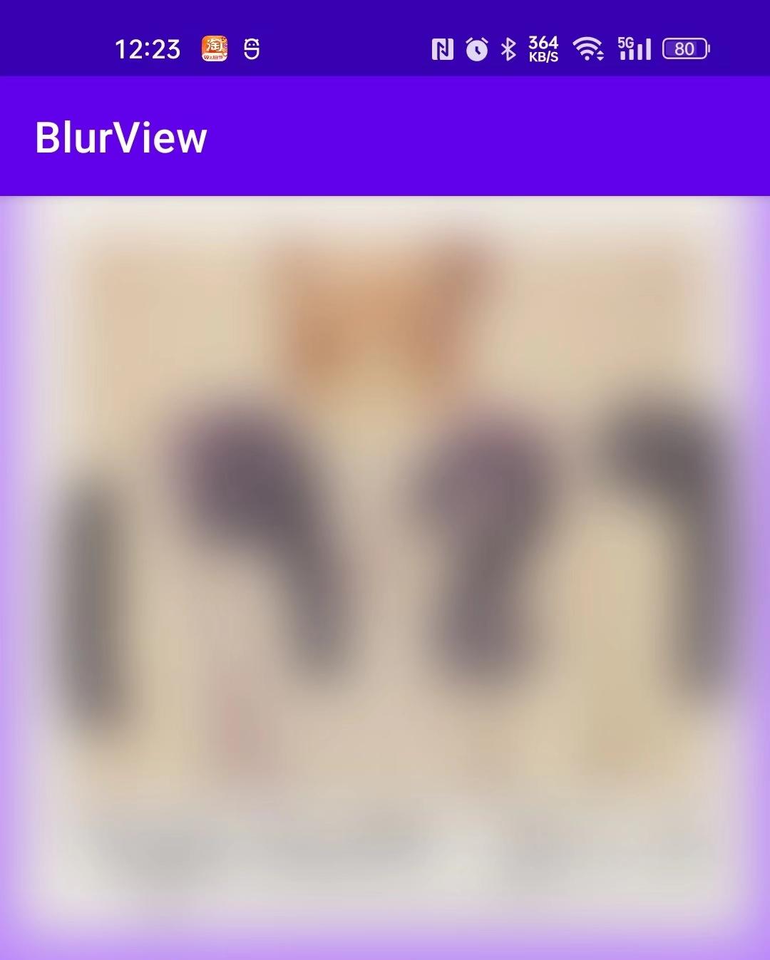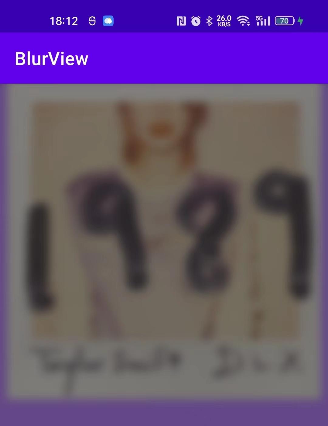 <androidx.constraintlayout.widget.ConstraintLayout ... android:id="@ id/rootView" android:background="@color/purple_200" > <ImageView ... android:id="@ id/imageView" /> <eightbitlab.com.blurview.BlurView ... android:id="@ id/blurView" /> </androidx.constraintlayout.widget.ConstraintLayout>