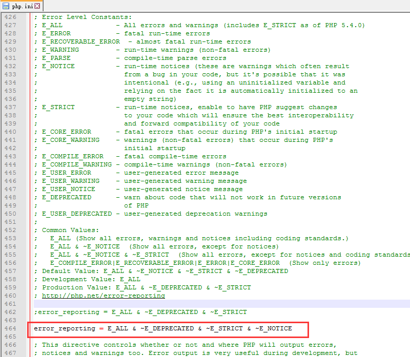 error_reporting = E_ALL & ~E_DEPRECATED & ~E_STRICT & ~E_NOTICE