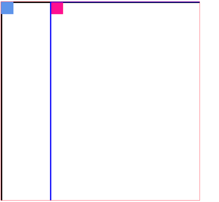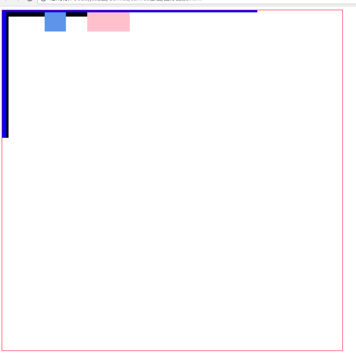 <!DOCTYPE html> <html> <head> <meta charset="UTF-8"> <title></title> <style type="text/css"> canvas{ border:1px solid red; } </style> </head> <body> <canvas id="mycanvas" width="800" height="800"></canvas> </body> <script type="text/javascript"> var canvas = document.getElementById("mycanvas"); var context = canvas.getContext("2d"); //用黑色直线线表示开始的x/y轴 context.beginPath(); context.moveTo(0,0); context.lineWidth = 5; context.lineTo(800,0); context.stroke(); context.beginPath(); context.moveTo(0,0); context.lineWidth = 5; context.lineTo(0,800); context.stroke(); //原矩形:蓝色 context.beginPath(); context.fillStyle = "cornflowerblue"; context.fillRect(0,0,50,50); context.fill(); //平移矩形:粉色 context.beginPath(); context.translate(200,0) //正:往右、下 context.fillStyle = "deeppink"; context.fillRect(0,0,50,50); context.fill(); //用蓝色直线表示平移以后的坐标轴 context.beginPath(); context.moveTo(0,0); context.lineWidth = 5; context.lineTo(400,0); context.stroke(); context.beginPath(); context.moveTo(0,0); context.lineWidth = 5; context.lineTo(0,400); context.stroke(); </script> </html>