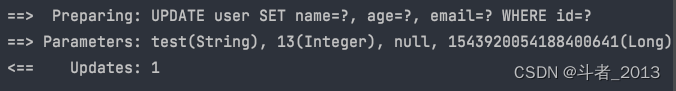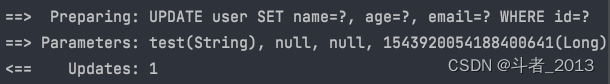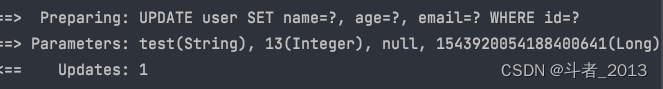 可以看到由于email字段的值为null,所以执行updateById方法时没有对email字段进行更新。