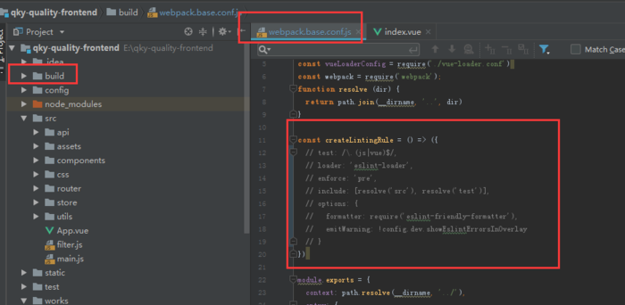 这个很简单,build --> webpack.base.conf.js,然后注释掉图片所指那段代码,就可以了。